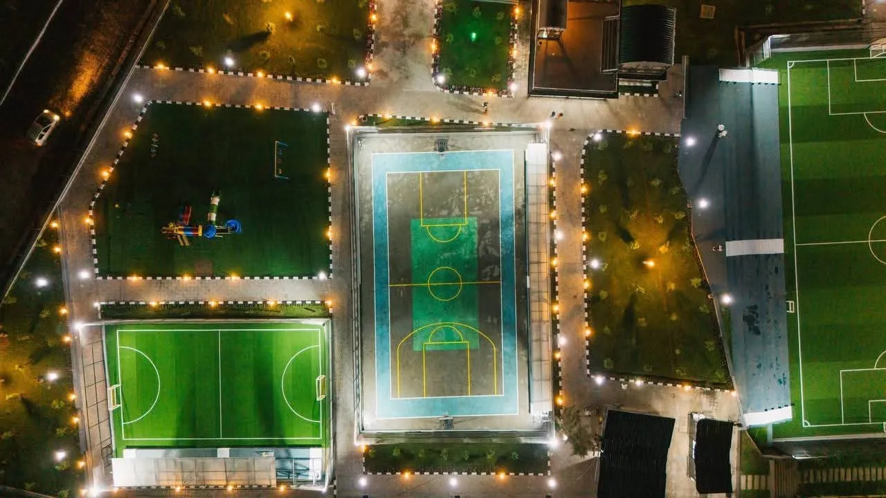 - 7 sports fields and a 130-hectare riverside green development.