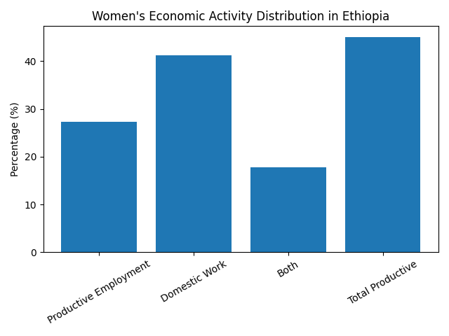 Women play a central role in the economy of Ethiopia, yet their participation remains unequal in both structure and outcomes. National and regional data reveal a striking paradox; while women are highly active economically, their contributions are invisible, unpaid, or undervalued. According to the 2025 gender brief by African Development Bank, women make up nearly half of the population and contribute significantly to economic activity, yet only 7.8% are engaged in paid employment, which underscores the imbalance between participation and reward. This gap is further reflected in Ethiopia’s economic gender index score of 0.542, signaling persistent disparities in access to income, resources, and opportunities.